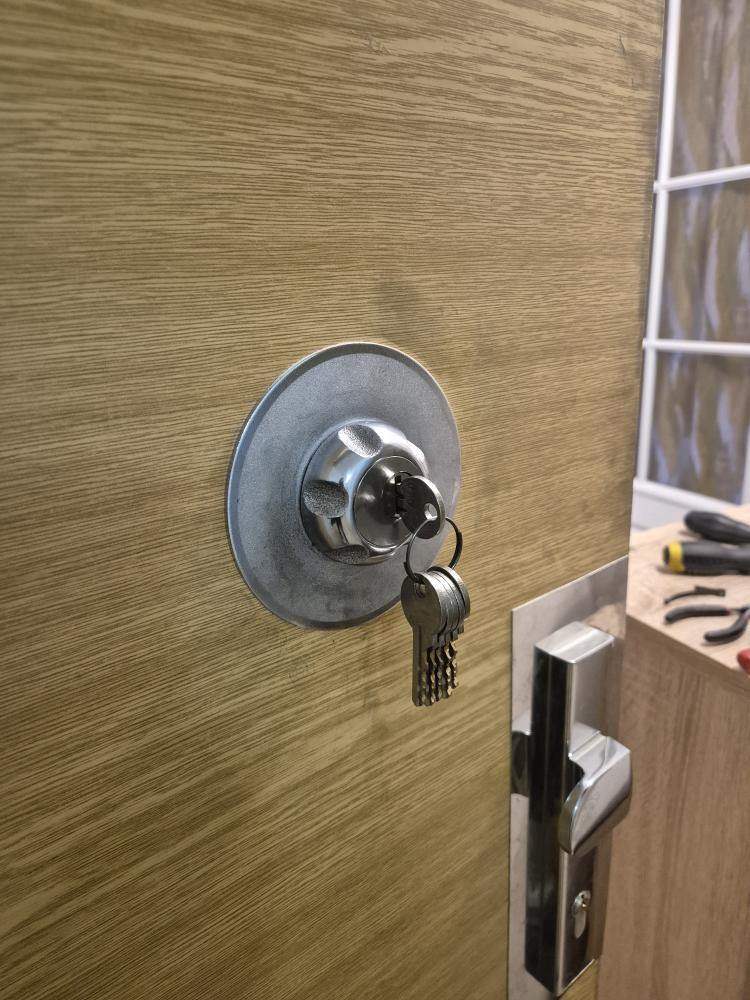 V první fázi technik provedl šetrné otevření dveří, čímž zajistil přístup do bytu, aniž by došlo k poškození bezpečnostního dveřního křídla a rámu. Následně přistoupil k demontáži poškozeného mechanismu a jeho kompletní výměně za nový originální rozvorový zámek FAB. Závěr zásahu zahrnoval precizní finální seřízení celých dveří pro zajištění jejich hladkého a dlouhodobě spolehlivého chodu.